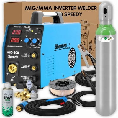 ⚡ SHERMAN® HOBBY MIG 200 SPEEDY - SVAŘOVACÍ SADA ✅ Popis produktu Poloprofesionální MIG/MAG invertorová svářečka SHERMAN MIG 200 SPEEDY je určena pro ruční obloukové svařování...