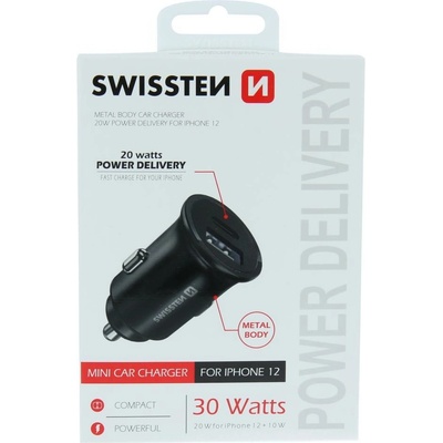 Autonabíječka / adaptér SWISSTEN - USB-A + USB-C - 30W - kovová - černá; 20119100 Nabíjejte svá zařízení v autě bleskovou rychlostí! Už žádné starosti s vybitou baterií na...