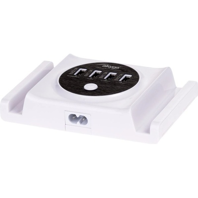 AKYGA nabíječka 230V -> 4x USB 5V / 6A - bílá Univerzální elegantní mini USB nabíječka do el. sítě s praktickým stojánkem. Lze nabíjet až 4 zařízení současně. Nabíjecí proud až...