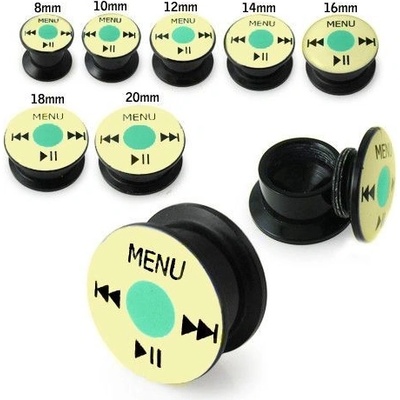 Plug do ucha černé barvy se šroubovacím předním dílem, iPod menu pod glazurou.