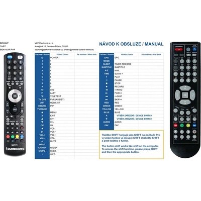 POUZE ZÁKLADNÍ FUNKCE. BEZ ZADÁVÁNÍ KÓDŮ. Náhradní dálkový ovladač pro BENSAT 210, BENsat 200IR-PVR , 250IR-PVR , 210IR, BENsat 290 IR, Bensat 290IR-PVR