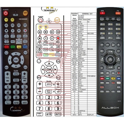Dálkový ovladač ALLBOX HD3500IR duplikát 1:1 originálního dálkového ovladače. Dálkový ovladač byl vyvinut speciálně na míru pro tyto modely značky ALLBOX:HD 3500 IR, HD3500,...