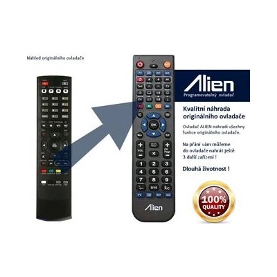 Dálkový ovladač ATlink 100 IR, 200 IR Kvalitní náhradní dálkové ovládání jiného vzhledu pro Satelitní příjímač ATlink. Pod značkou ALIEN získáte kvalitní a levnou náhradu...
