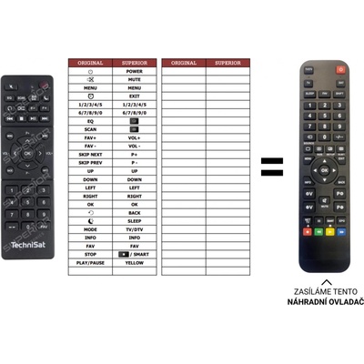 Technisat náhradní dálkový ovladač. Nepotřebuje kódy,