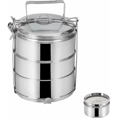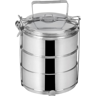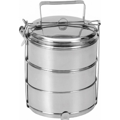 Jídlonosič 3 patrový celo nerezový je určený na přenášení potravin. Součástí je poklička a 2 další víčka na misky, kovový stojan s přezkou, která zajistí jeho pevné uzavření....