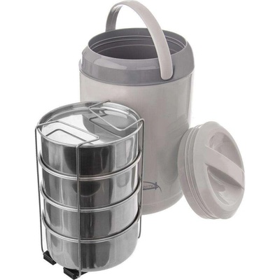 Termojídlonosič pro přenášení pokrmů dlouho zachová jejich teplotu. Součástí je kovový stojan, opatřený přezkou, která zajistí jeho pevné uzavření a vrchní poklice. Materiál: ne...