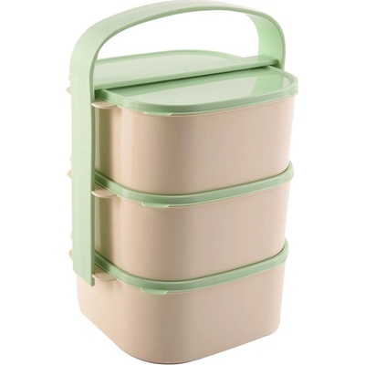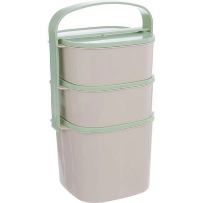 Plastový jídlonosič je určen pro přenášení a uchování potravin. Hranatý, 3 misky. Každá miska je opatřena víčkem, snadné sepnutí pomocí spony. Materiál: plast. Rozměry: 15x15...