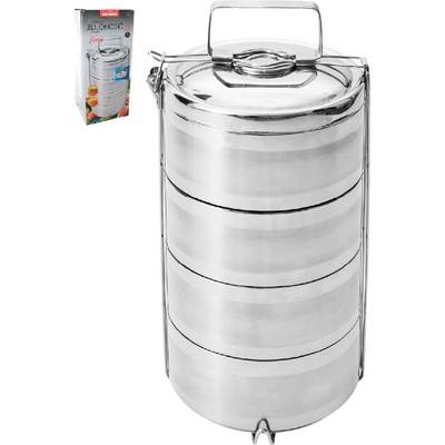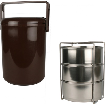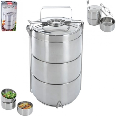 Termojídlonosič nerezový 3 patrový pro přenášení pokrmů, který dlouho zachová jejich teplotu. Součástí je kovový stojan, opatřený přezkou, která zajistí jeho pevné uzavření a...
