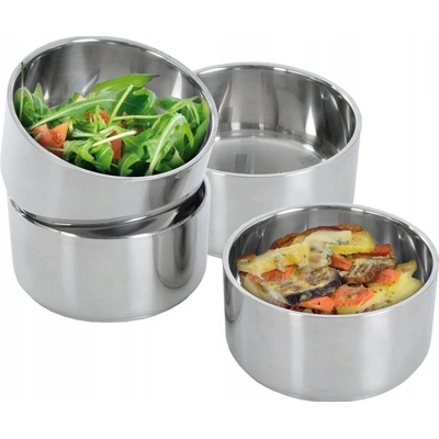 Podrobnosti o produktu OR120957 Nerezový čtyřpatrový termojídlonosič v rovném provedení, jehož součástí jsou 4 dvoustěnné misky o průměru 14 cm, vrchní poklice a kovový stojan...