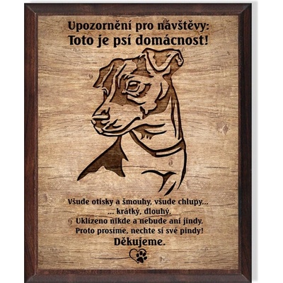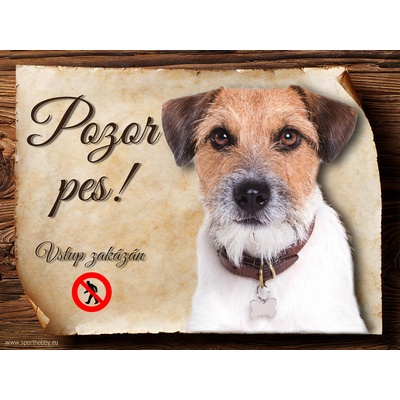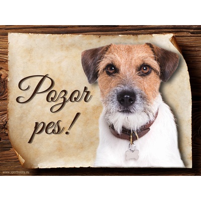 Barevná cedulka Pozor pes, Jack Russel terier Výstražná plastová tabulka s informací, že se v lokalitě nachází konkrétní zvíře. Informační tabulka je zalaminována, takže je...