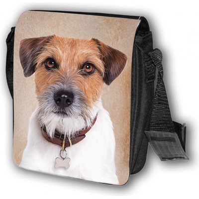 Originální vycházková taška přes rameno s Jack russelem terierem. Nylonová vycházková taška s popruhem přes rameno, černé barvy. Velikost tašky je 21x20 cm....
