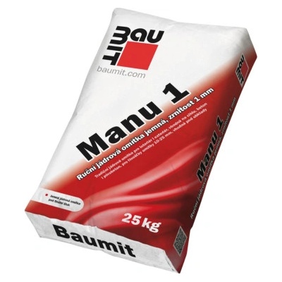 Baumit Manu 1 jemná jádrová omítka vápenocementová Ruční vápenocementová jádrová omítka minerální - dobře paropropustná. - Zrnitosti 1 mm - Pro interiér i exteriér. -...