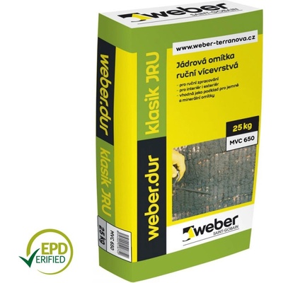 Weberdur klasik JRU omítka Ruční vícevrstvá jádrová omítka vhodná jako podklad pro jemné a minerální omítky. Omítání všech typů stavebních materiálů ve vnějším i vnitřním...
