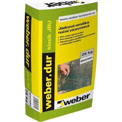 Vícevrstvá jádrová omítka pro ruční zpracování. Pro interiér i exteriér. Vícevrstvá jádrová omítka Weberdur klasik JRU 25 kg na bázi anorganického plniva, pojiva a...