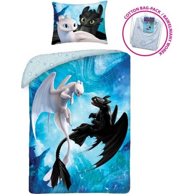 Povlečení Jak vycvičit Draka Bezzubka a Bleskoběska Rozměr: přikrývka 140x200 cm, polštář 70x90 cm Oboustranné bavlněné povlečení s motivem pohádky Jak vycvičit draka v...
