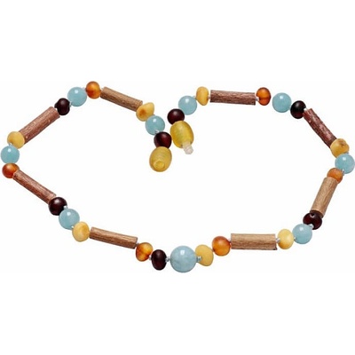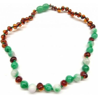 Okouzlující a atraktivní jantarové korálky pro děti na zoubky z kousků jantaru zelené barvy v kombinaci s kulatými korálky apatitu, avanturínu a tyrkysu. Korálky drahokamů jsou...
