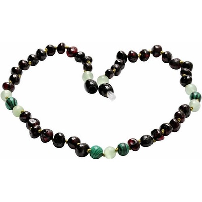 Okouzlující a velice atraktivní jantarové korálky pro děti na zoubky z leštěných větších kulatých barokních kousků jantaru v barvě třešní s malachitem a ulexitem (syntetickým...