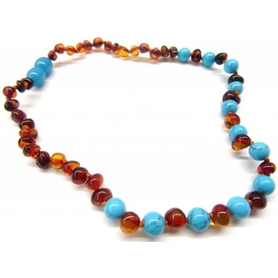 Tento nádherný dětský náhrdelník kombinuje krásu a sílu dvou výjimečných kamenů: koňakově zbarveného jantaru a modrého tyrkysu. Jemná kombinace barev a léčivých vlastností dělá...