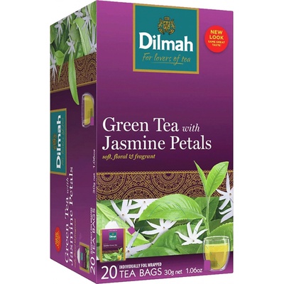 Dilmah Jasmine Petals Zelený čaj s přírodním květem jasmínu. Kombinace jemného zeleného čaje Dilmah s přírodním květem jasmínu. Chuť čaje je delikátní, má osvěžující a...