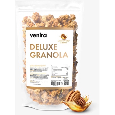 Vilgain Granola je prémiová směs s kvalitním vločkami, křupavými oříšky, ingrediencemi z ekologického zemědělství jako javorový sirup a se špetkou Himálajské soli.