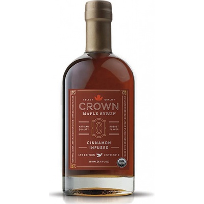 Americký javorový sirup Crown Maple® s příchutí skořice Sladké a zároveň kořeněné květinové tóny skořice podtrhují hnědé přepuštěné máslo a chuť pražených pekanových ořechů.