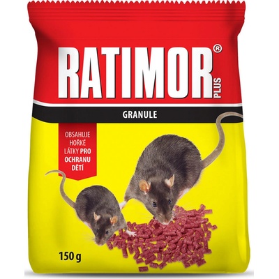 Nástraha na myši a potkany a další hlodavce Ratimor Plus ve formě granulí, vhodná k použití v deratizačních staničkách, ty je třeba umístit v bezprostřední blízkosti míst, kde byla zaznamenána aktivita hlodavců, účinná látka: bromadiolon 0,0029%, po použití by mělo...
