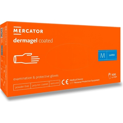 Latexové nepudrované vyšetřovací a ochranné rukavice nejvyšší kvality DERMAGEL COATED vhodné nejen do zdravotnictví, ale i pro průmysl a potravinářství. velikost M, balení 100 ks.
