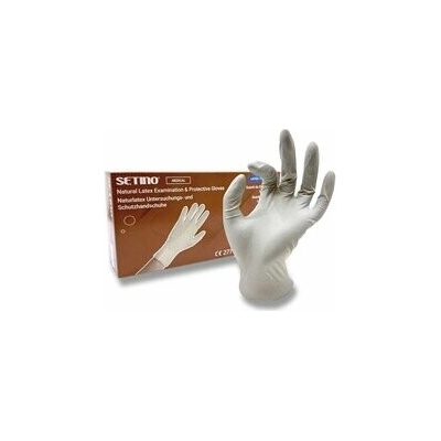 Latexové jednorázové mléčně bílé, nesterilní ochranné a vyšetřovací rukavice bez pudru, texturované na špičce prstu, pohodlné rukavice nejvyšší kvality SETINO vhodné nejen do...