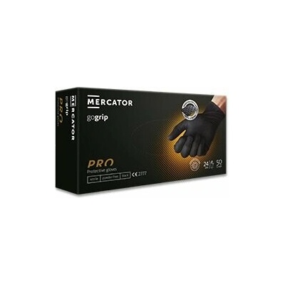 Nepudrované nitrilové rukavice, extra pevné, odolné chemikáliím, MERCATOR gogrip (black), různé velikosti, balení 50 ks (25 párů). Revoluční rukavice v černé barvě...