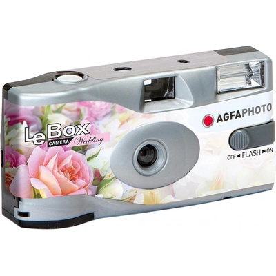 AfgaPhoto LeBox Wedding Flash je snadno použitelný jednorázový fotoaparát, který je dodáván s barevným filmem pro 27 snímků. Fotoaparát má vlastní grafický design, který je speciálně přizpůsoben pro svatby. Také disponuje vestavěným bleskem, který lze zapnout a vypnout...