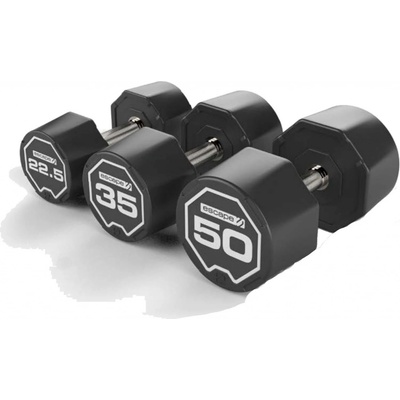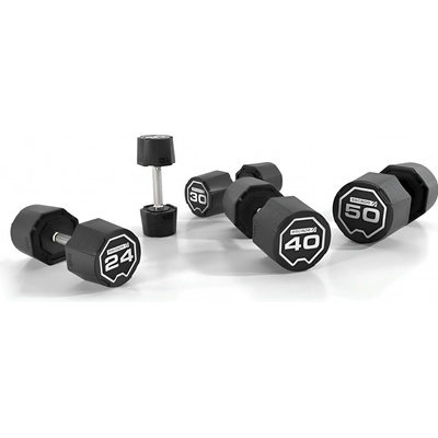 Jednoruční uretanové činky jsou pevně spojeny v jeden celek. Hlava činky je kovová s uretanovým povrchem. Má kruhovitý tvar, který se rozvíjí v osmiúhelník. Díky těmto vlastnostem je činka dostatečně stabilní. TVAR: Okraje činky jsou oválné a směrem k rukojeti...