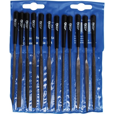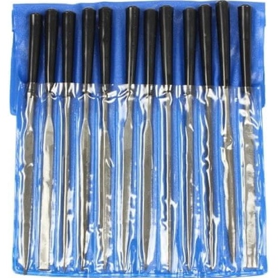 Jehlové pilníky pro přesné dokončovací práce ve skle, keramice, dřevě, kovech. 10 různých tvarů ocelových hrotů. Aplikace ve šperkařství, hodinářství, rytí. celková délka: 140...