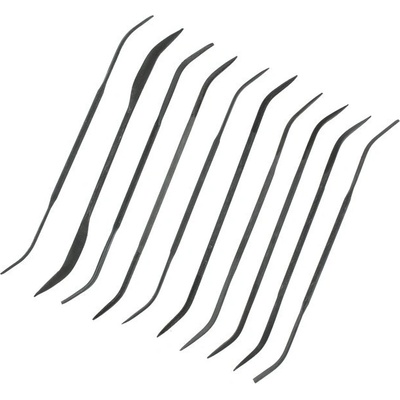 Sada 10 kusů jehlových profilových zahnutých pilníků. Nezbytný nástroj při práci s kovy, dřevem či plasty. Základní průřezy pilníků jsou obdélník, čtverec, kruh, půlkulatý a...
