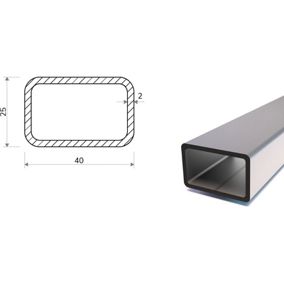 Uzavřený, žárově zinkovaný profil 40x20x1,25mm určený pro široké využití v oblasti stavebnictví a konstrukcí.