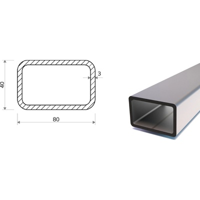 Jekl 80x40x3mm, bez povrchové úpravyDodáváno v základní délce 6m. V případě zkrácení produktu na míru dle objednávky zaniká nárok na odstoupení od smlouvy v zákonné lhůtě 14 dnů.