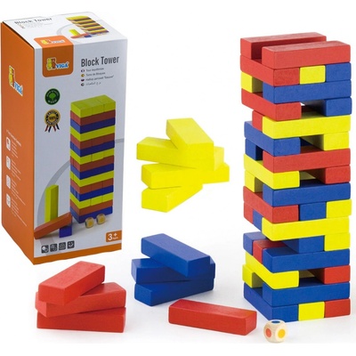 Barevná Jenga věž s hrací kostkou. Součástí balení této zábavné a napínavé rodinné hry jsou pravidla v češtině, angličtině, němčině i francouzštině. Věž také výborně slouží jako...