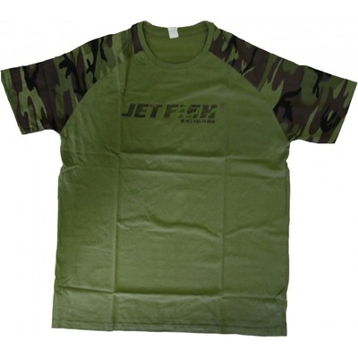 Triko z kvalitní pleteniny pohodlné na nošení. Barva khaki vsazené maskáčové rukávy, potisk