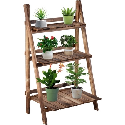 Dřevěný třípatrový stojan na rostliny | tmavě hnědý Toto rostlinné schodiště s celkem třemi stupni se skvěle hodí na balkón, terasu nebo i do obývacího prostoru. Tři stupně...