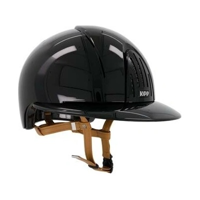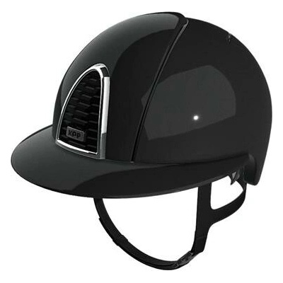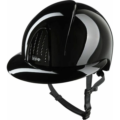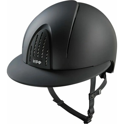 Jezdecká bezpečnostní helma KEP Italia s širokým POLO kšiltem a inovativní technologií pro maximální bezpečnost jezdce. Lesklý černý design s černou mřížkou a rámečkem. Přilba...