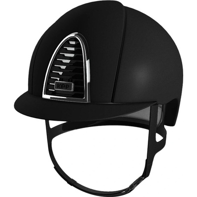 Jezdecká bezpečnostní helma KEP Italia s širokým POLO kšiltem a inovativní technologií pro maximální bezpečnost jezdce. Lesklý černý design s černou mřížkou a stříbrným...