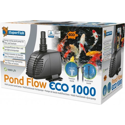 Pond flow ECO 1000 Max. hloubka ponoru: 1,4 m Výstup: 20 / 25 / 32 mm Příkon: 12 W Napětí: 230 V Max. průtok: 1000 l / hod Délka připojovacího kabelu: 10 m...