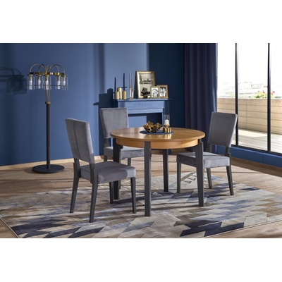 Rozkládací jídelní stůl Sorbus Rozkládací jídelní stůl Sorbus najde své využití zejména v moderních jídelnách či kuchyních. Vrchní deska stolu je vyrobená z MDF s přírodní dýhou v odstínu dubu medového. Výhodou kulatého tvaru desky je úspora prostoru v interiéru. Pevná...