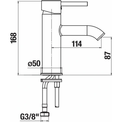 Umyvadlová stojánková baterie páková, bez výpusti, průtok 5 l/min, výška baterie 16,8 cm, délka raménka 11,4 cm, flexi připojení G 3/8", materiál kov, povrch chrom. UPOZORNĚNÍ : Odpadová souprava není standardní součástí dodávky a je nutno ji dokoupit zvlášť....