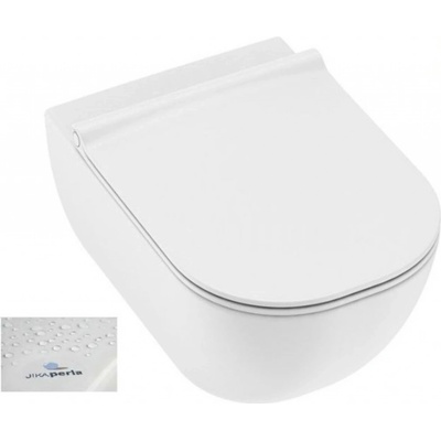 MIO JP-bílá WC mísa závěsná RIMLESS s JIKAperla (bez oplachového kruhu) Bez oplachového kruhu Instalační sada: Součástí dodávky Kapotovaná verze ke zdi Odpad: Vodorovný...