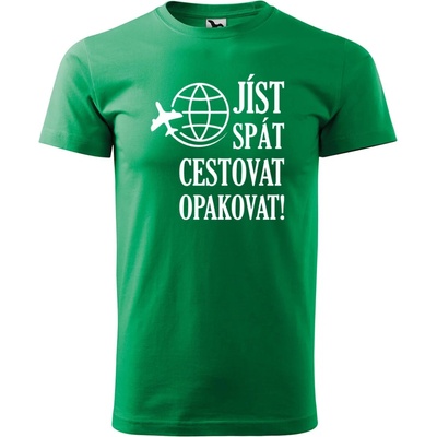 Sablio Tričko s potiskem Jíst, spát, cestovat zelené