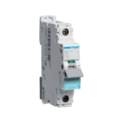 Jednopólový jistič HAGER NCN116 na DIN lištu s charakteristikou zátěže C, maximálním proudem 16 A a zkratovou vypínací schopností 10 kA. Jistič slouží k ochraně elektrických...