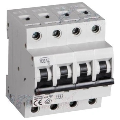 Jistič čtyřpólový, s vypínací charakteristikou B s jmenovitým proudem 25A k ochraně el. instalací a zařízení bez proudových rázů (světelné obvody a distribuce el. energie ),...