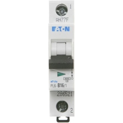 Jistič EATON PL6 16A B/1 Parametry: Montáž: DIN lišta / TH 35mm Zkratová odolnost: 6 kA Spouštěcí charakteristika: B Jmenovité napětí: 230V AC Jmenovitý proud: 16 A...