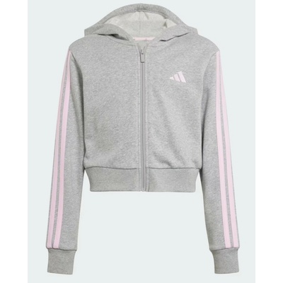 Dívčí mikina Adidas Essentials Full-Zip Hoodie Kids JJ0949 šedá měkká, stylová a udržitelná volba Tato pohodlná juniorska crop mikina adidas kombinuje měkký french terry...