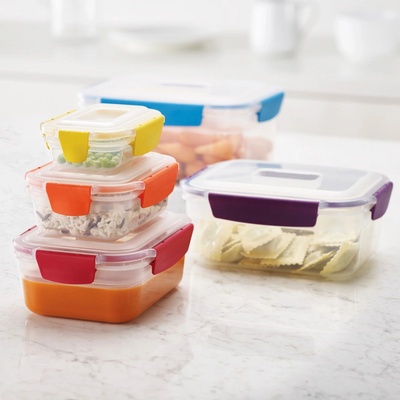 Nádoby na potraviny JOSEPH JOSEPH Nest Lock 5 Nest Lock nádoby elegantně řeší problémy obvyklé u obdobných typů výrobků – prostorovou neúspornost, nutnost odděleného skladování...